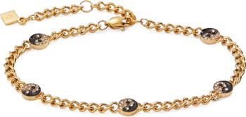 An ancient symbol of balance, the yin yang represents the essential push and pull that keeps the universe in its sacred equilibrium - and does the same within us. This yin yang curb chain bracelet has five crystal- and enamel-accented yin yang charms in-line on an adjustable-length curb chain bracelet. It's a reminder that there is no day without night, no good without bad, and no end without a beginning. Wear it and keep your own sacred balance.