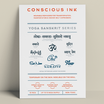 Our Yoga Sanskrit Variety 10-Pack combines both Sanskrit and Tibetan symbols and phrases to encourage you with a daily reminder to connect deeper with your spirit. Your favorite yogi will be sure to love these! (Contains 10 different Manifestation Temporary Tattoos. Individually cut. Ready to apply in seconds!)