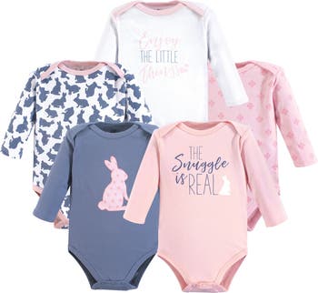 Yoga Sprout Multipack Five Long-Sleeve Bodysuits, Main, color, Snuggle Bunny