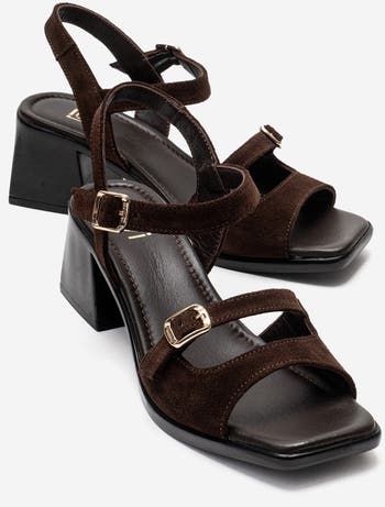 A minimalist block-heel sandal that balances timeless sophistication with a warm suede touch