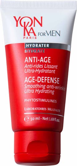 Yon-Ka. This luxurious moisturizer deeply hydrates for a softer, healthier-looking complexion. Formulated with a blend of botanicals and essential oils, this lightweight formula works by increasing skin's hydration levels by 115%. It smooths fine lines, repairs damage, and regenerates new skin cells with growth factors and stem cells. The formula also contains strong antioxidants which protect skin from environmental damage and significantly slows signs of aging. Formulated especially for men, Age Defense Moisturizer is ideal for use after shaving.