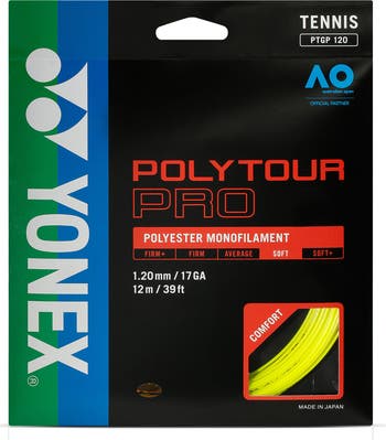 The Yonex Poly Tour Pro 125 Yellow Tennis String offers great control and fantastic spin potential within a softer playing polly. Aggressive, big hitting players will enjoy the feel and durability of the Yonex Poly Pro 125 Tennis String.