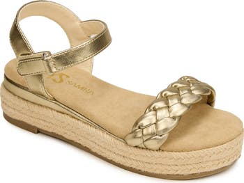 A braided toe strap brings adorable charm to an espadrille-inspired sandal lifted by a jute-wrapped platform and subtle wedge heel. A lightly padded footbed and slip-resistant sole offer comfort and stability.