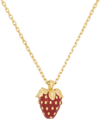 A golden-dappled strawberry pendant evokes a sense of summertime style to this delicate chain necklace.