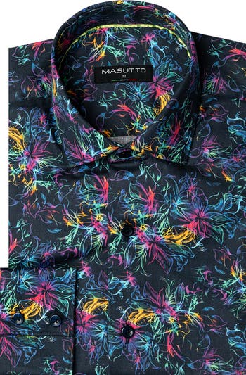 A printed shape-fit sport shirt made from satin and breathable cotton for easy movement.