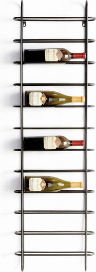 Clean and modern, this updated design is made of round metal stock. It effortlessly showcases your favorite twelve bottles. A sturdy, wall-mounted design, it uses a minimal floating shelf design for a lighter look.