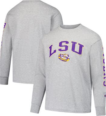 Youth Champion Gray LSU Tigers Distressed Arch Over Logo Long Sleeve T-Shirt