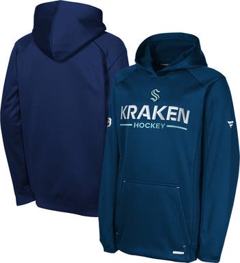 Elevate your young fan's Seattle Kraken pride with the Authentic Pro Rink Raglan Hoodie. Part of the official collection worn by the team on and off the ice, this Fanatics hoodie offers a taste of professional style. Crafted from lightweight, heather-striped jacquard fabric, its classic fit ensures comfort and breathability. Raglan sleeves provide unrestricted movement, perfect for active youngsters. Boasting the iconic acrylic team logo, this hoodie is a must-have for budding Seattle Kraken enthusiasts.