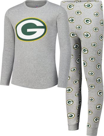 Outerstuff Youth Green Bay Packers Long Sleeve T-Shirt and Pants Sleep Set, Alternate, color, Heather Gray