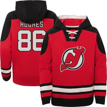 Youth Jack Hughes Red New Jersey Devils Ageless Must-Have V-Neck Name & Number Pullover Hoodie