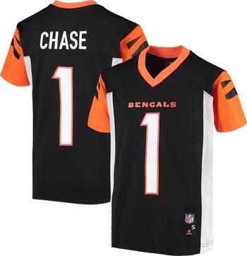 Give your young fan another reason to root for the Cincinnati Bengals with this Ja'Marr Chase Replica Player jersey. With bold graphics dedicated to Cincinnati Bengals, this jersey features a design just like the one Ja'Marr Chase would wear on the field. Plus, it's crafted from sleek polyester for an ever-comfortable feel.