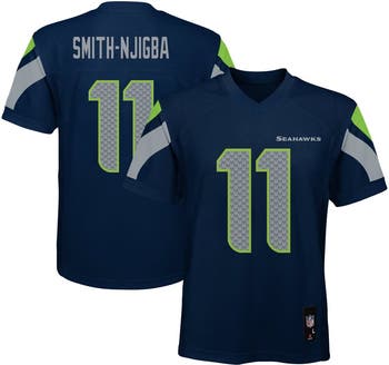 Get your young fan ready for game day with this Jaxon Smith-Njigba Seattle Seahawks Replica Player Jersey. This jersey is crafted from lightweight polyester with breathable mesh side panels, ensuring your kiddo stays cool and comfortable all game long. The heat-sealed graphics provide a sleek look, while the rib-knit collar and woven jock tag add classic football jersey details that will make your youngster feel like a part of the team.