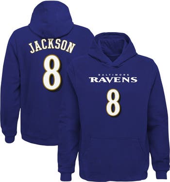Youth Lamar Jackson Purple Baltimore Ravens Mainliner Player Name & Number Pullover Hoodie