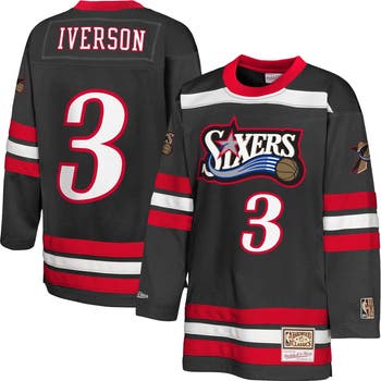 Youth Mitchell & Ness Allen Iverson Black Philadelphia 76ers Maxxed Out 2.0 Fashion Hockey Jersey