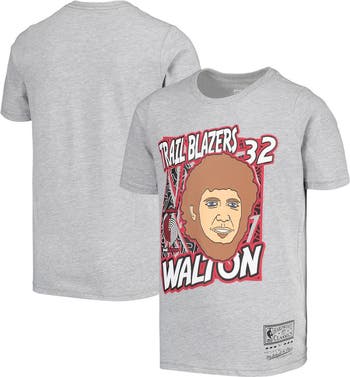 Youth Mitchell & Ness Bill Walton Gray Portland Trail Blazers Hardwood Classics King of the Court Player T-Shirt