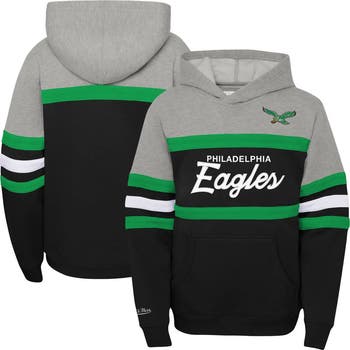 Remind your favorite young sports fan of the glory days of the Philadelphia Eagles with this Throwback Head Coach Hoodie from Mitchell & Ness. This midweight pullover offers fleece lining and a front pouch pocket for maximum warmth and comfort, making it perfect for the cooler weather of football season. The vintage team logo embroidered on the left chest and the sewn-on sleeve stripes add a touch of vintage flair, making this a unique addition to any young enthusiast's wardrobe.