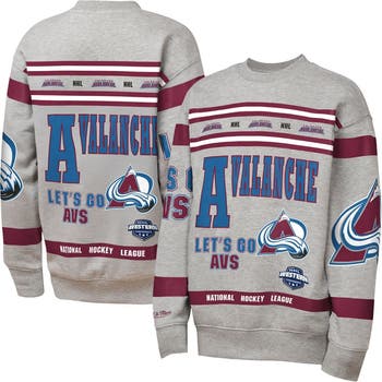 Youth Mitchell & Ness Heather Gray Colorado Avalanche Allover Print Fleece Crewneck Sweatshirt