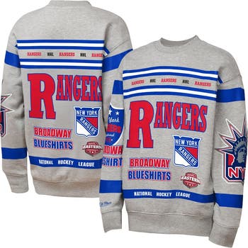 Youth Mitchell & Ness Heather Gray New York Rangers Allover Print Fleece Crewneck Sweatshirt