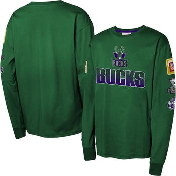 Let your young fan rep the dominant dynasty of the Milwaukee Bucks with this Hardwood Classics All Over Long Sleeve T-Shirt from Mitchell & Ness. This long sleeve tee features screen print graphics on the front and both sleeves for a look that pops with Milwaukee Bucks pride. The soft, 100% cotton fabric offers a comfortable feel, while the crew neck provides a traditional look that's perfect for game day or any day.