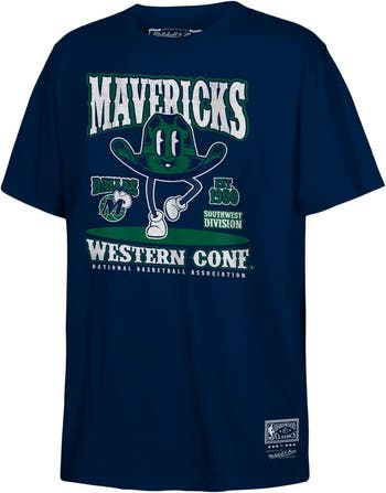 Youth Mitchell & Ness Navy Dallas Mavericks Retro Mascot Script T-Shirt