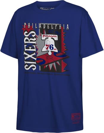 Youth Mitchell & Ness Royal Philadelphia 76ers Retro '90s Poster T-Shirt