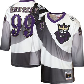Let the kiddos celebrate the extraordinary career of "The Great One" with this Mitchell & Ness Wayne Gretzky Los Angeles Kings 1995/96 Power Play Jersey. This meticulously crafted jersey recreates the iconic Kings Alternate design, featuring sewn-on fabric and tackle-twill appliques, and flatlock stitching. The sewn-on stripes, woven jock tag, and side splits at the hem add to the authentic vintage feel, perfect for young fans honoring a true legend of the game.