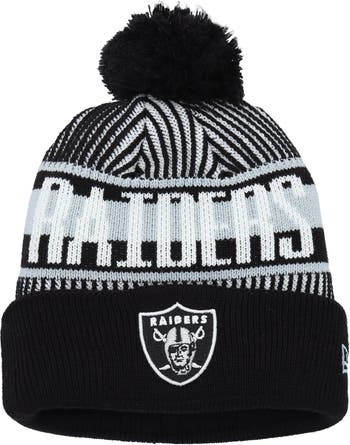Youth New Era Black Las Vegas Raiders Striped Cuffed Knit Hat with Pom