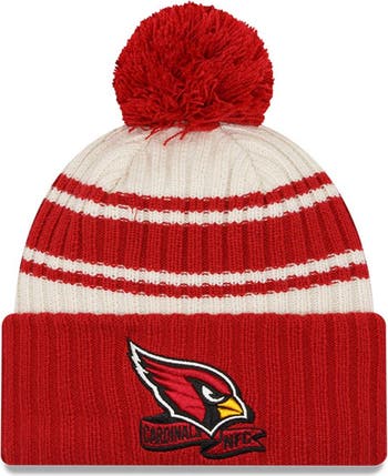 Youth New Era Cream/Cardinal Arizona Cardinals 2022 Sideline Sport Cuffed Pom Knit Hat