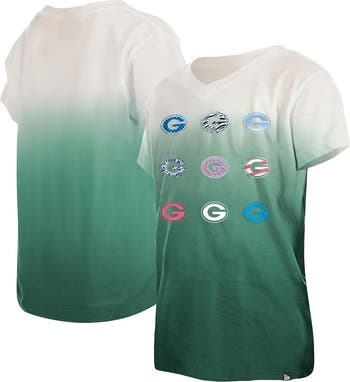 If your kiddo's favorite team is the Green Bay Packers, then be sure to pick up this Multi Logo T-shirt from New Era. It features nine team logos across the front that come in multiple different designs and colors, giving this tee a one-of-a-kind look. The stylish V-neck and ombre design are sure to make this a staple in your young fan's Green Bay Packers game day rotation.