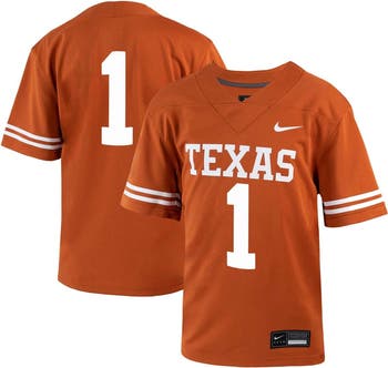 Your youngster is a devoted Texas Longhorns fan, and they want everyone to know who they're rooting for in this epic rivalry. Help them express their enthusiasm by grabbing them this Space Force Rivalry Alternate Game Football Jersey from Nike. This jersey features distinctive Texas Longhorns graphics, complete with a #1 on the front and the back, perfect for showing off their loyalty to the team.