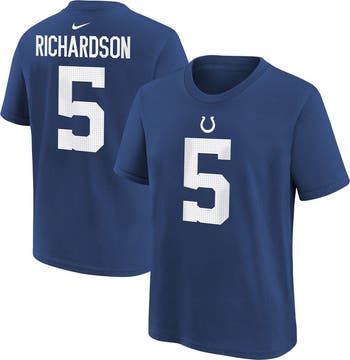 Encourage your young fan to show support for their favorite Indianapolis Colts player with this Anthony Richardson Name and Number T-shirt from Nike. It's designed as a simpler alternative to the on-field Indianapolis Colts jerseys. Soft fabric makes this Anthony Richardson tee an ideal option for game day.