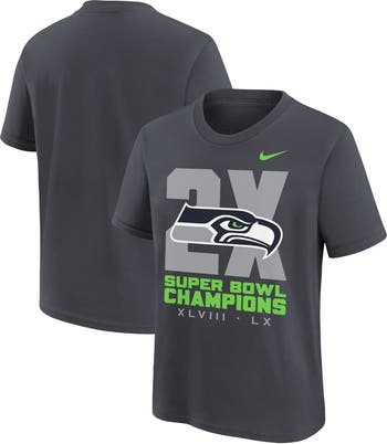 Youth Nike Anthracite Seattle Seahawks Two-Time Super Bowl Champions Multi-Champs T-Shirt