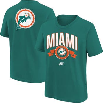 Let your favorite young fan showcase their love for the Miami Dolphins with this Rewind Front & Back Essential T-Shirt from Nike. The throwback graphics printed on both sides of the tee help any child connect to the storied past of the Miami Dolphins. The rib knit collar and soft cotton design ensure maximum comfort, helping your youngster stay cool through the school day or around the house.