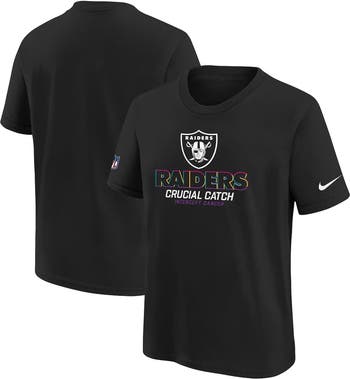 The NFL Crucial Catch Collection allows your kiddo to take a stance in the fight against cancer. In the spirit of the various cancer ribbon colors, this Nike 2024 NFL Crucial Catch T-Shirt features the Las Vegas Raiders logo on the front with a multi-colored striping pattern. With this in their collection, your young fan can join the Las Vegas Raiders players as they wear similar gear during the month of October! The NFL does not profit from the sale of Crucial Catch products. Charitable contributions are awarded by the NFL Foundation to the American Cancer Society. For more information, please visit www.NFL.com/CrucialCatch.