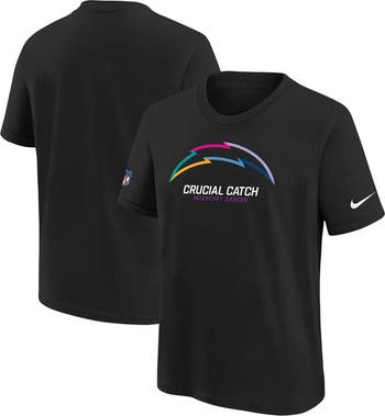 The NFL Crucial Catch Collection allows your kiddo to take a stance in the fight against cancer. In the spirit of the various cancer ribbon colors, this Nike 2024 NFL Crucial Catch T-Shirt features the Los Angeles Chargers logo on the front with a multi-colored striping pattern. With this in their collection, your young fan can join the Los Angeles Chargers players as they wear similar gear during the month of October! The NFL does not profit from the sale of Crucial Catch products. Charitable contributions are awarded by the NFL Foundation to the American Cancer Society. For more information, please visit www.NFL.com/CrucialCatch.