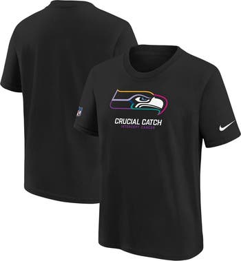 The NFL Crucial Catch Collection allows your kiddo to take a stance in the fight against cancer. In the spirit of the various cancer ribbon colors, this Nike 2024 NFL Crucial Catch T-Shirt features the Seattle Seahawks logo on the front with a multi-colored striping pattern. With this in their collection, your young fan can join the Seattle Seahawks players as they wear similar gear during the month of October! The NFL does not profit from the sale of Crucial Catch products. Charitable contributions are awarded by the NFL Foundation to the American Cancer Society. For more information, please visit www.NFL.com/CrucialCatch.