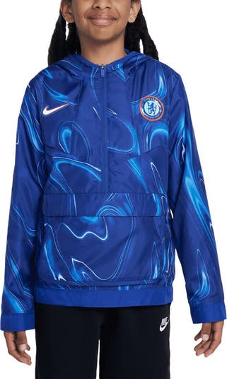 Get your young fan ready to cheer on Chelsea with this Nike Amplify Anorak Half-Zip Hoodie Jacket. This stylish anorak features a scuba hood and mesh lining, providing both protection from the elements and breathability. With its lightweight construction, it's perfect for mild temperatures, keeping your young Chelsea fan comfortable and ready to cheer on their favorite team.