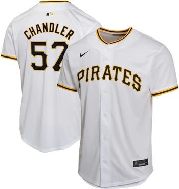 Elevate your young fan's style with this Bubba Chandler Pittsburgh Pirates Home Player Game Jersey from Nike. Designed to mirror the on-field uniforms, this jersey proudly displays heat-applied team graphics and Bubba Chandler's name and number. The breathable polyester fabric and standard fit will keep your young fan comfortable whether they're at the ballpark or playing their own game on the diamond.