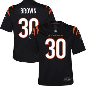 Help your youngster showcase their admiration for one of the NFL's top players with this Chase Brown Cincinnati Bengals Game jersey. Complete with mesh panels for extra breathability, this exclusive Nike jersey replicates the version that Chase Brown wears every Sunday, giving your young fan the perfect gear for every Cincinnati Bengals game this season.