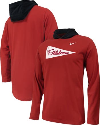 Youth Nike Crimson Oklahoma Sooners Sideline Performance Long Sleeve Hoodie T-Shirt