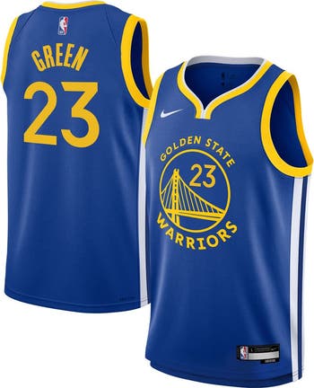 When the Golden State Warriors hit the court, your youngster will be ready to watch Draymond Green lead the team to victory when they have this Swingman jersey from Nike. With a bold Icon Edition build and Dri-FIT technology, this jersey lets them show support in comfort with an authentic on-court design. The double-knit fabric with mesh texture and rubberized, heat-sealed team graphics, player name, and number will have your kiddo feeling like Draymond Green on the hardwood.