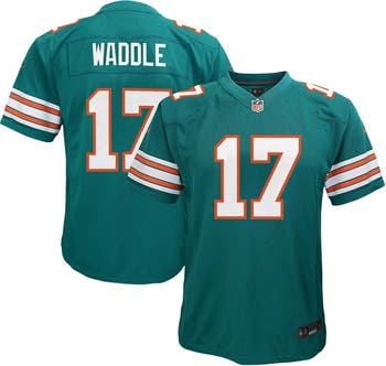 Get your young fan ready to cheer on their favorite Miami Dolphins player with this Jaylen Waddle Alternate Player Game Jersey from Nike. This Jaylen Waddle jersey is designed for movement, featuring mesh side panels for extra breathability and side splits at the hem for a full range of motion. With its vibrant screen-printed graphics and comfortable loose fit, this jersey is perfect for your kiddo to represent their favorite Miami Dolphin on game day.