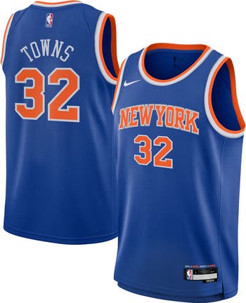 When the New York Knicks hit the court, your youngster will be ready to watch Karl-Anthony Towns lead the team to victory when they have this Swingman jersey from Nike. With a bold Icon Edition build and Dri-FIT technology, this jersey lets them show support in comfort with an authentic on-court design. The double-knit fabric with mesh texture and rubberized, heat-sealed team graphics, player name, and number will have your kiddo feeling like Karl-Anthony Towns on the hardwood.