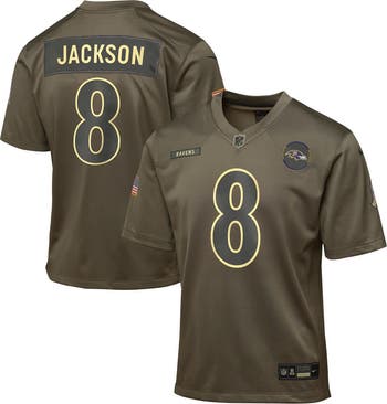 Youth Nike Lamar Jackson Olive Baltimore Ravens 2025 Salute to Service Game Jersey