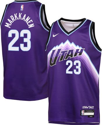 Watch your young fan get ready for tipoff while they rep their favorite player in this Nike Icon Edition Swingman Jersey, featuring Lauri Markkanen of the Utah Jazz. The jersey's double-knit fabric and Dri-FIT technology work together to wick away moisture, keeping them comfortable both on and off the court. The standard, relaxed fit provides an easy feel for all-day wear while the droptail hem with slide splits is engineered for enhanced freedom of movement. Complete with heat-sealed team and player graphics, this jersey is the perfect way for your young fan to support their favorite star.