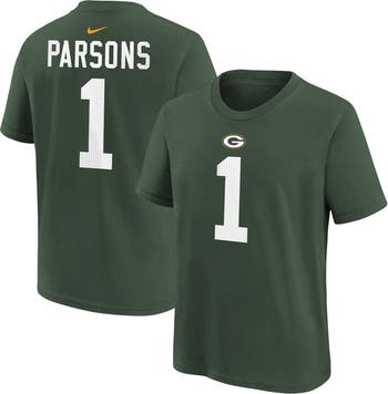 Young fans can rep their favorite linebacker in this Micah Parsons Player Name & Number T-Shirt from Nike. Its soft, breathable cotton fabric features a screen-printed Green Bay Packers logo and player number stacked on the front with Micah Parsons name proudly displayed on the back. Grab this bold tee before the opening kick and rest assured everyone will know your youngster is rooting for the Green Bay Packers.