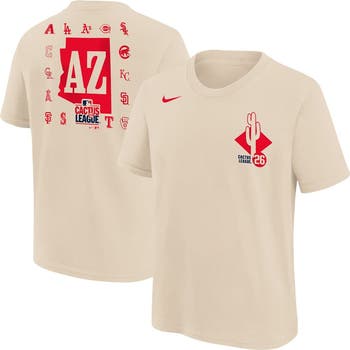 Gear up your young fan for sunny days at the ballpark with this 2026 Spring Training Cactus League T-Shirt from Nike. This tee features lightweight 100% Cotton, ensuring breathability and all-day comfort as they cheer on their favorite team. The tagless collar with interior taping and a traditional standard fit provides a smooth, distraction-free feel during every inning. Complete with vibrant Cactus League graphics on the front left chest and back, this shirt will let everyone know that they are ready to cheer on their team at Spring Training.