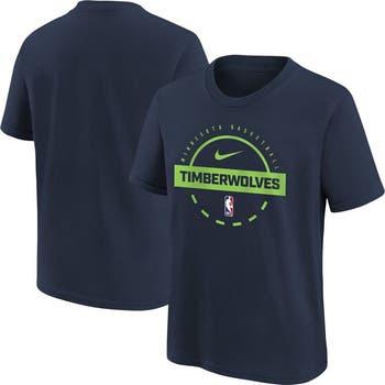 Help your favorite young fan train like the pros with this Minnesota Timberwolves Practice T-Shirt from Nike. Made from soft, all-cotton fabric, this tee ensures all-day comfort. The rib-knit, tagless collar adds to the cozy feel, and the printed team graphics make it the perfect choice for supporting the Minnesota Timberwolves.