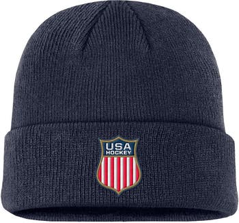 When the weather turns cold, young fans can show support for US Hockey by wearing this Terra Cuffed Knit Hat from Nike. Soft knit fabric with a fine texture provides cozy warmth and a snug fit. The solid design focuses attention on the team crest applique and US Hockey pride.