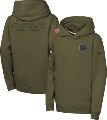 Join the Dallas Cowboys in honoring those who bravely serve our country with this 2025 Salute to Service Club Fleece Hoodie by Nike.It features military-inspired team details and an American flag patch. Cozy fleece fabric and breathable French terry lining keep young fans warm and comfy in this patriotic Dallas Cowboys hoodie. The NFL does not profit from the sale of Salute to Service products. Charitable contributions are awarded by the NFL Foundation to the NFL's Salute to Service nonprofit military partners.